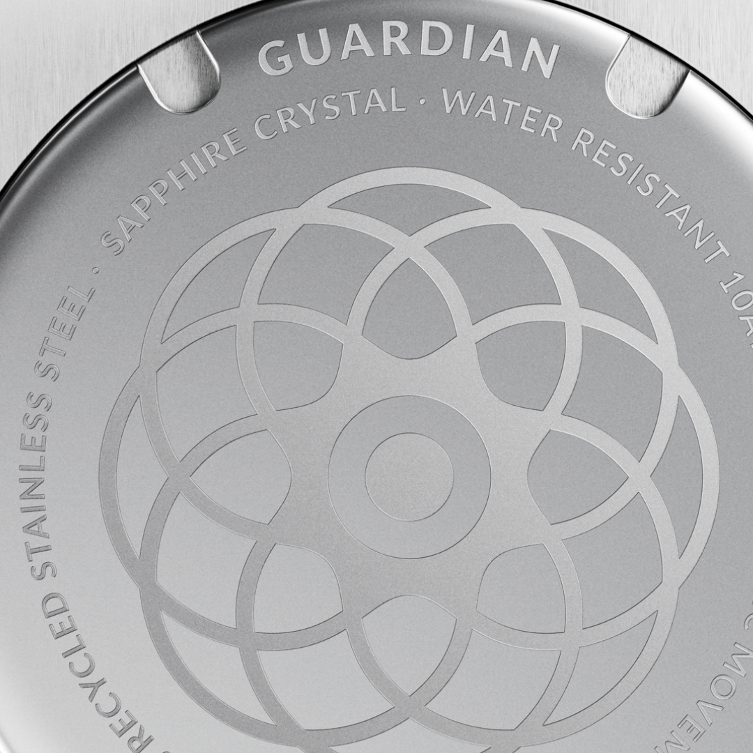 Guardian Sølv Hvid Skive med Sølv H-Link Urrem
